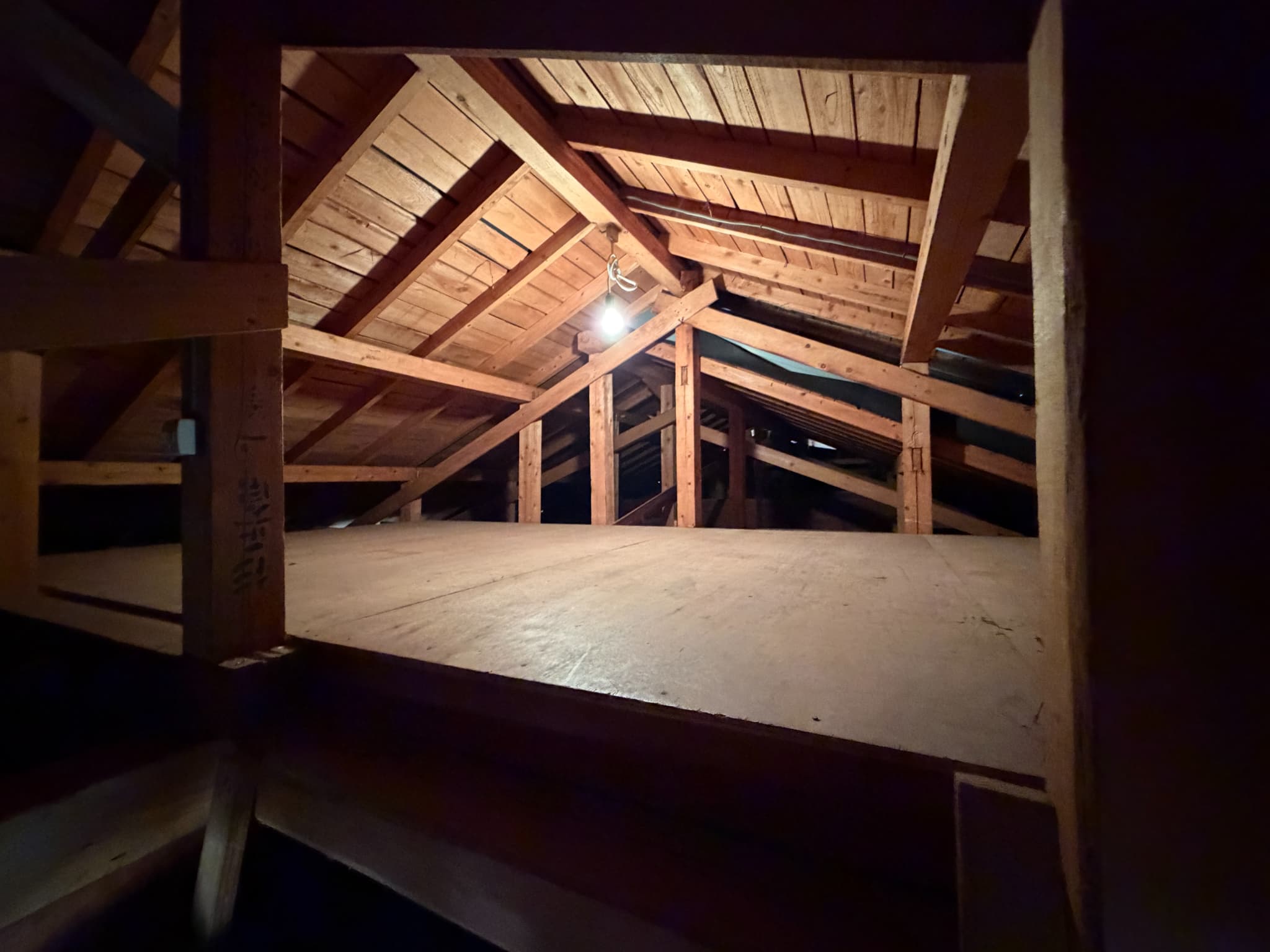屋根裏には物置として使えるよう、一定のスペースに土台が作ってあり、
